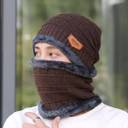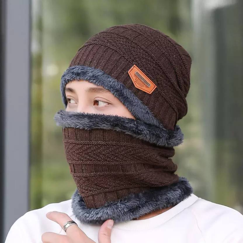 Winter Warm Woolen Beanie Cap Neck Set Brown with Hand Touch Gloves Combo