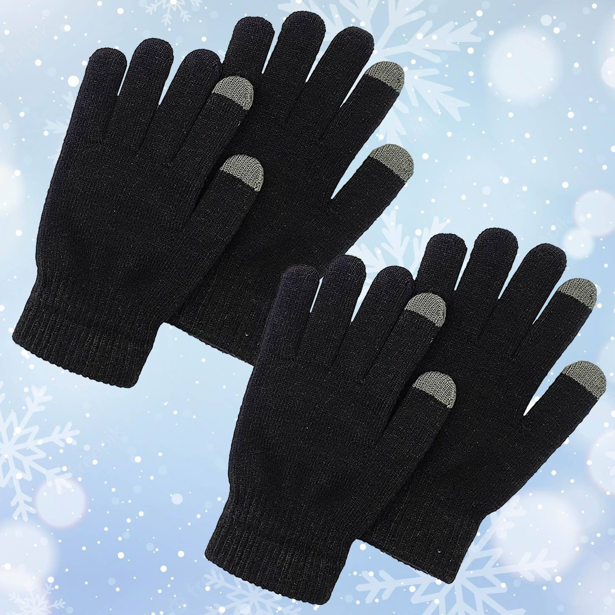 Winter Warm Wool Touch Gloves 2Pair (Black,Black)