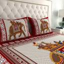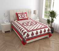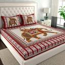 Cosito Cotton Double Flat 144 TC Printed Bedsheet (Pack of 1, Red, Brown)