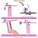 | Key Features | - Multifunctional Airbrush Kit - Our airbrush kit can be used for facial SPA, makeup, nail art, tattoos, cake decoration, art painting, handicrafts, models coloring, etc. Meet your various needs in many ways., This air Airbrush Set can save raw materials and full of practicality. Easy fluid refills and easy cleaning.Note:Thick essence and paint may not spray out. Just need to make sure cleaned thoroughly after each use so nozzle doesn’t clog or not spray evenly., Use the air spray principle to refine the liquid. it could atomize aquiform skincare products of high viscosity (less than 3000mpa.s).Help skin gain the deep absorption., Lightweight and Portable. Perfect for model making, cake decoration, drawing camouflage contours, tattoo manicure, crafts,tattoos,nail art and more!, If you have any poblems, please comtact me and we will give you a satisfied solution.