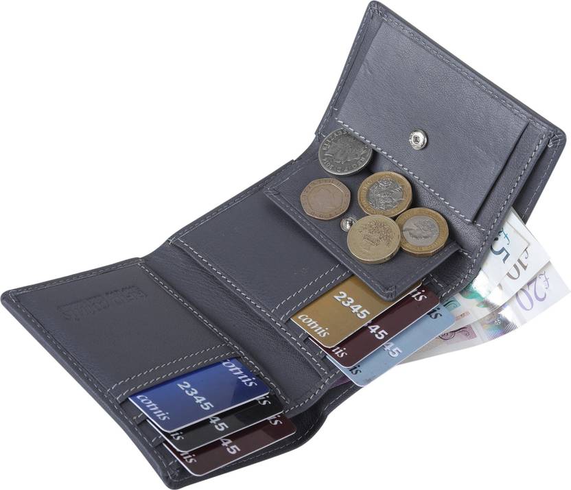 Built-in RFID blocking technology Space for 8 To 10 credit/debit cards With Big Stud Button Pocket For Coins And Metal Materials.