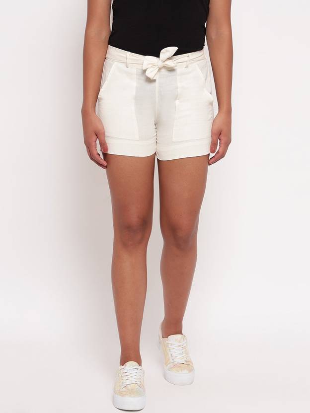 ZIBHI Solid Women White Basic Shorts, Beach Shorts, Gym Shorts, Hotpants, Night Shorts, Running Shorts