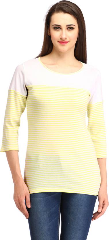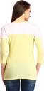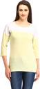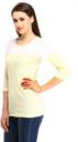 Casual Top with solid contrast yoke and contrast binding on the sleeves. Round neck top with three fourth sleeves.