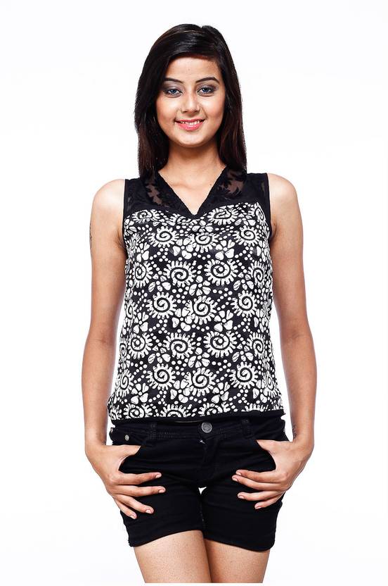 Capturing the season’s trend to lend a chic touch to your casual look, this black printed tunic from Cottinfab is sure to attract attention. Create a mod contrasting look by styling this sleeveless tunic with colored ankle fit pants or skirts and pumps.
