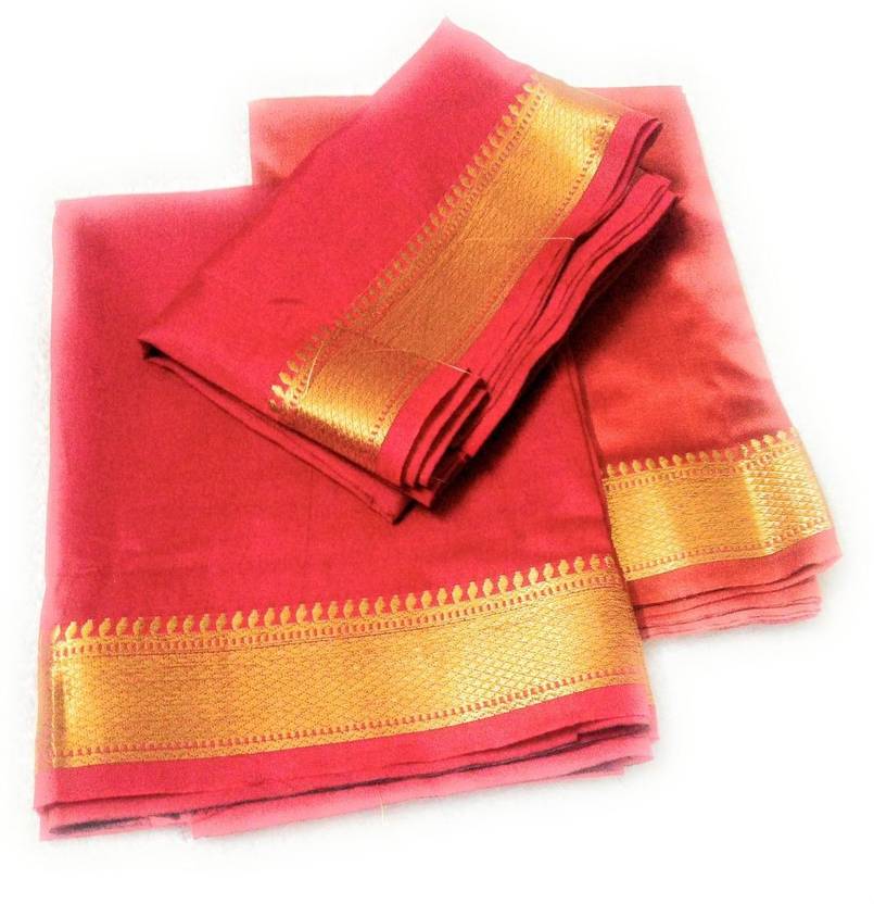 These are Multi-coloured unstitched Silk-Cotton Blouse Pieces with Golden Border popularly used for in Navratri, Durga Puja, Weddings, Puja, Ghar Vastu, 'Ugadi', 'Haldi Kunku' and other functions. Each piece is 100 cm long (1 meter). This blouse piece does not require lining.