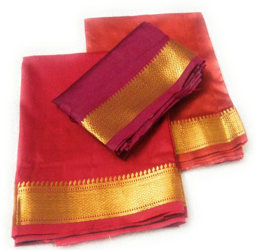 These are Multi-coloured unstitched Silk-Cotton Blouse Pieces with Golden Border popularly used for in Navratri, Durga Puja, Weddings, Puja, Ghar Vastu, 'Ugadi', 'Haldi Kunku' and other functions. Each piece is 100 cm long (1 meter). This blouse piece does not require lining.