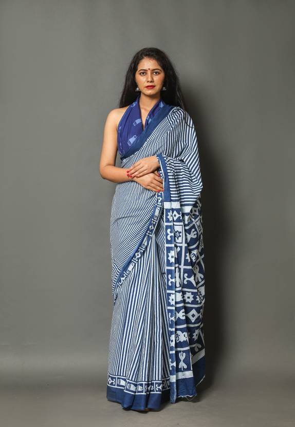 Jaipuri Traditional Hand Block Printed Soft Cotton Mulmul Saree, Sanganeri Cotton Malmal Saree, Bagru Cotton Mulmul Saree, Batic / Batik Print Cotton saree, Shibori Cotton Mulmul Saree In Super Fine 92*80 Fabric Quality With Attached Blouse Piece for Woman