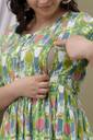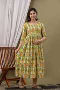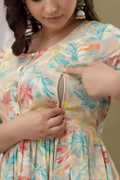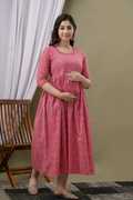 The Anarkali kurta is adorned with printed designs, which can vary in patterns, colors, and motifs. Common print designs include floral, paisley, geometric, or abstract patterns, which are often created using various techniques such as block printing, screen printing, or digital printing., Postpartum Wearable – Wear it beyond pregnancy for relaxed comfort and easy feeding.