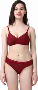 Cotton Plus Bra & Panty Set Solid Maroon Lingerie Set