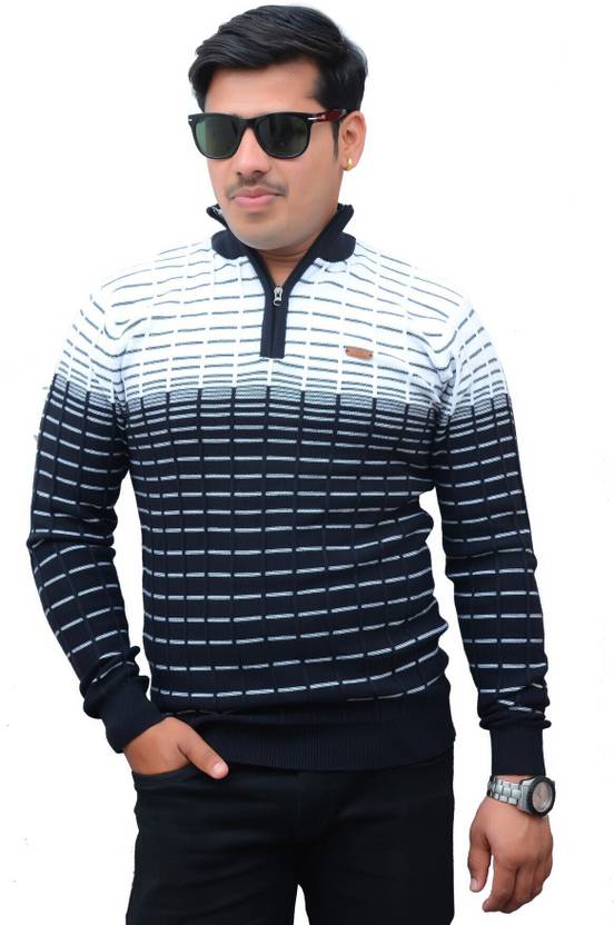 CottonAvenue Woven High Neck Casual Men Blue Sweater