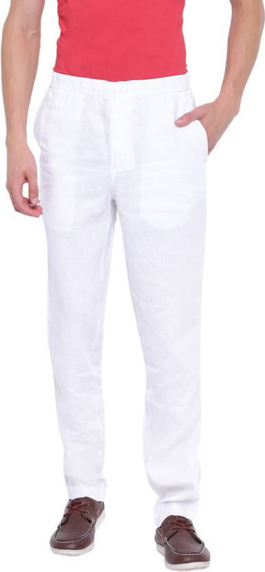 STYLE: M-PANTS-13485-18101-WHITE BRAND: COTTONWORLD CATEGORY: MENS OCCASION: CASUAL WEAR TYPE: PANT PRINT: SOLID FABRIC: WOVEN FABRIC COMPOSITION: 100% LINEN WOVEN SOLID LINEN FIT TYPE: REGULAR FIT COLOR: WHITE POCKET: SLANT POCKET LENGTH: FULL LENGTH WAIST: DRAWSTRING OPENING: FRONT ZIP LEG: STRAIGHT LEG HEMLINE BOTTOM: FOLDED HEM WASH CARE: MACHINE WASH COLD, DARK COLORS SEPERATELY, NO BLEACH, REMOVE PROMPTLY, DRY IN SHADE