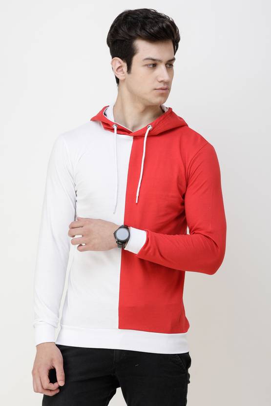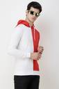 Men Colorblock Hooded Neck Pure Cotton White, Red T-Shirt