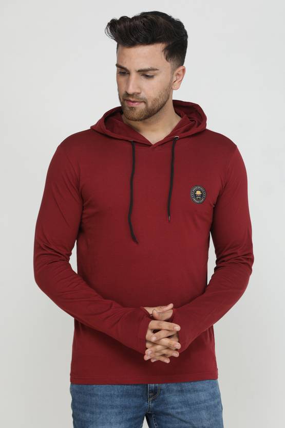 COUNTRY YARD Solid Men Hooded Neck Maroon T-Shirt