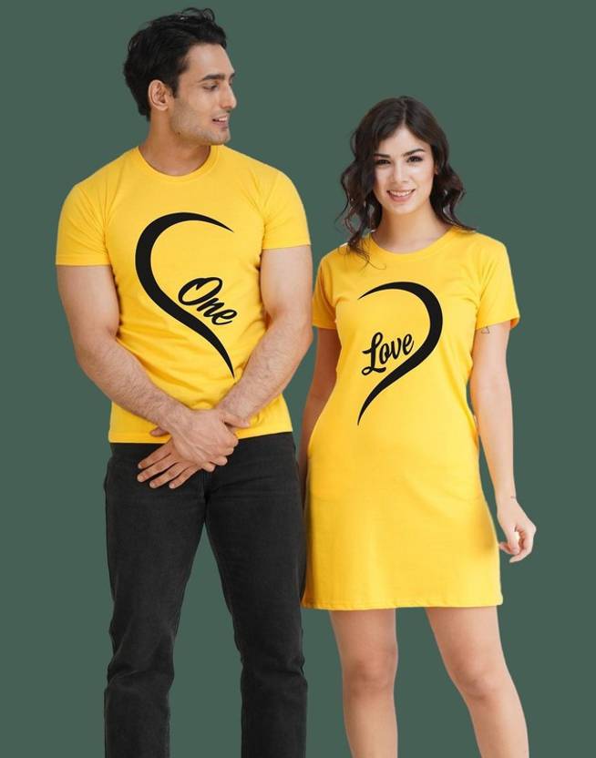 Shop from a wide range of Dress & T-Shirt from COUPLESTUFF.IN Enhance your love for your loved onces. Perfect for your everyday use and special occasions. Pair it with a stylish pair of Jeans or Trousers and complete the look. One & Love Printed Couple Dress & T-Shirt (Pack Of 2 ) in cotton fabric for casual wear - By COUPLESTUFF.IN