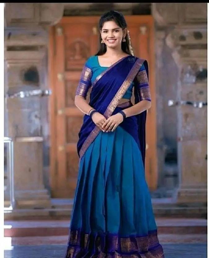 South Indian Haf Sarees Unstitched Blue Indigo Color Jcard Narayan Pattu Lehenga For Women