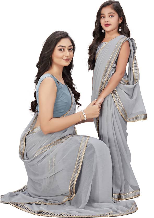 Cozee Shopping Present Dazzling Matching Mother & Daughter, Sister & Cousin in Extremely Elegant Indian Attire Saree Combo. This one's for our loving moms out there! This Saree Combo is a reminder for you to Love Yourself. Mother Daughter Combo (Same Pattern and Designer Saree Set for Mother and Daughter). Its Comes with Attractive Color Option Star Designer Mother Daughter Combo of Saree. This Mother Daughter Combo Made in Chiffon Fabric and Have Good Quality and Finishing with Our Trustable Cozee Shopping Brand. Mother Daughter Combo in ethnic Wear Give Wings to Mother and Child to Fly to Full Fill Her Fashion Yield. Mother Saree Come in Free Size (5.5 Mtr Saree with 0.80 Un-Stitched Blouse Piece) and Child (Daughter) Set Come in Size Between 2 To 11 Year. Baby Girls Saree Length 4.5 Mtr And Blouse Piece Comes With 0.65 Mtr. You Can Choose Your Baby Girls Saree Size by Her Age.