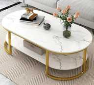 cozycrafted Luxury Marble Finish Coffee Table Engineered Wood Coffee Table (Finish Color - white&golden, Pre-assembled)