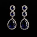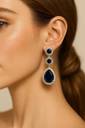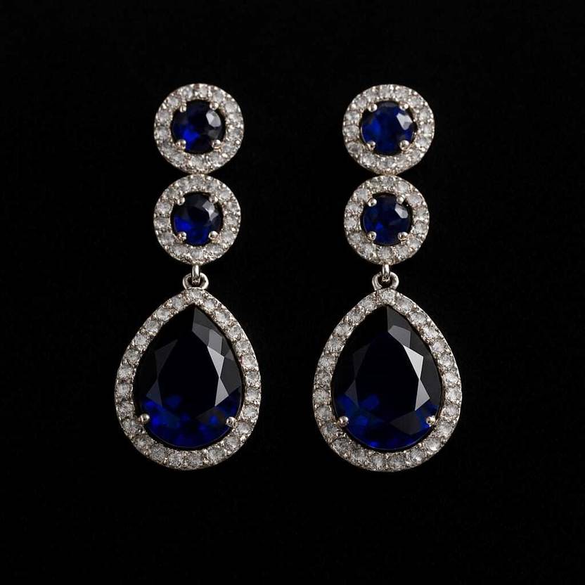 Turn heads with these luxurious blue stone drop earrings designed to add instant glamour to any outfit. Featuring three-tiered round and teardrop sapphire-blue stones, surrounded by sparkling white crystals, these statement earrings are perfect for weddings, parties, and festive occasions. Lightweight yet bold, they blend classic charm with modern elegance.