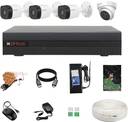 Featuring a full HD 4-channel DVR system, this CCTV kit includes 3 CP Plus Bullet Cameras with up to 2.4 Mega Pixels, offering night vision capabilities. It also comes with a dome camera. This kit includes a seagate or WD 1 TB hard drive for storage, CCTV cables (3+1), power supply, and BNC and DC pin set, ensuring that all components required for a complete security system are included.
