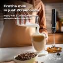 3-Speed Adjustable Settings – Customize frothing intensity for lattes, cappuccinos, and hot chocolate | Portable & Rechargeable – 1500 mAh battery with 60-minute running time and USB-C charging for convenience at home or on the go use | Charging Time: 5 Hours – Ensures long-lasting performance for multiple uses | Multifunctional Use – Comes with two interchangeable attachments: Milk Frother Whisk for creamy foam & an Egg Beater for mixing | Powerful & Quiet Motor – Creates rich foam quickly with minimal noise |