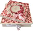 Capture and preserve all of your baby’s “firsts” in this one-of-a-kind baby book that will be cherished for generations. It has been designed specifically for those special moments and milestones that occur in a baby’s first year. The size of the handcrafted scrapbook is 12" by 12" and about 2" thick with 9 pages, 18 sides and the covers. It includes a keepsake box as well.The topics included in the handmade book are provided below.