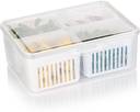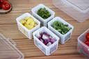 Fridge Storage Containers Introducing the Fridge Storage Containers, a comprehensive solution to all your storage needs. These refrigerator organizer boxes are designed to help you keep your fridge neat, tidy, and well-organized. The fridge storage boxes not only offer a convenient way to store your groceries but also add a touch of sophistication to your kitchen. The Fridge Storage Containers Set includes a variety of sizes, making it ideal for storing various types of food items. From masala box for kitchen to vegetable storage box for fridge, each container is designed to meet your specific needs. The plastic boxes for storage are made of high-quality, durable material that ensures longevity. The drain compartment keeps the flavor, the drain compartment in the box can drain water quickly and prolong the preservation time. There are inner boxes of the same size, which are very suitable for keeping your favorite foods fresh and safe. They can be placed in the refrigerator to save space and avoid cross infection. Easy To Put Back These food storage containers are made of high-quality plastic, BPA free, and use leak proof technology to help keep food fresh for a long time One of the unique features of these refrigerator boxes for storage is their airtight seal. This feature keeps your food fresh for longer periods, making them perfect for storing perishable items like vegetables and fruits. The fridge organizer storage boxes are also perfectly stackable, making them an ideal space-saving solution.