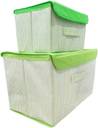 Craft Bazar Foldable Non-Woven Storage Box/Wardrobe Closet Organizer Box/Bins with Lid Cloth Storage Box (Green, White)