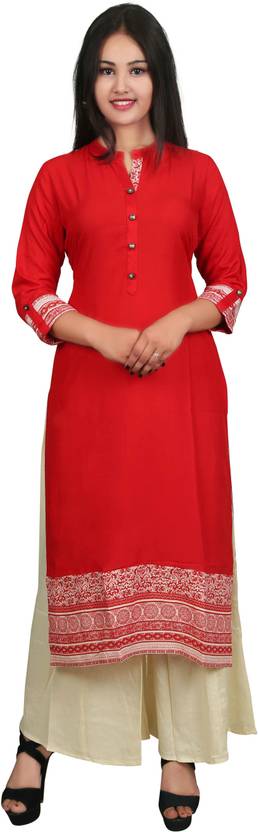 Craft G Home Women Printed Viscose Rayon Straight Kurta (Red, White)
