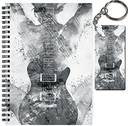 GUITAR SKETCH B&W ART A5 RULED 160 PAGES NOTEBOOK + FREE WOODEN KEYCHAIN | BEST GIFT FOR STATIONERY LOVERS