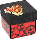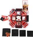 Looking to gift something heartfelt to your someone special? This love themed Explosion Box is perfect for your loved ones. This cute box has a secret gift - a random coloured Teddy Bear. Closed box size is 4*4*4 inches, opened box size is 12*12*12 inches. It can accommodate up to 48 photos. 1st layer has Glittery Black Lid, Booklet Card, Ladder Card, Beautiful Window Die Cut, Circular Die. This layer can contain up to 22 pics (3*3 inches). 2nd layer contains Glittery Black Lid, Flap Card, Butterfly Die Cut, 2-Sided Fold Card, Window Die Cut. This layer can contain up to 9 pics (3*3 inches). 3rd layer contains Glittery Black Kid, Waterfall Card, Zig-Zag Fold Card, Circular Die Cut, Heart Shaped Die Cut. This layer can accommodate up to 13 pics (2*2 inches). 4th layer contains 4 Beautiful Die Cuts. This layer can contain 4 pics (2*2 inches). If you wish to write messages, you can reduce the no. of pics and use the space for writing messages.