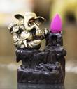 Craftam Handmade Golden Ganesha Idol Smoke Backflow Cone Incense Holder with 10 Cone Incenses Decorative Showpiece - 12 cm (Polyresin, Gold)