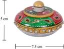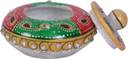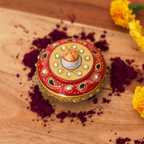 A Beautiful Sindoor Daani Made In Makrana Marble Will Definitely Embellish Your Dressing Area. Rooted To Indian Culture, This Product Holds Importance For Every Married Woman. Gold Painting, Traditional Colors And Kundans Further Embellish It !