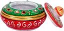 Craftam Handcrafted Marble Kumkum Box | Traditional Rajasthani Meenakari Sindoor Box | Decorative Showpiece - 5 cm (Marble, Green)