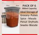 Craftbin Plastic Grocery Container - 1000 ml (Pack of 6, Black)