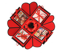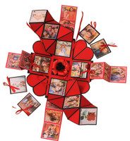 Featuring a square-shaped structure, this paper explosion box is creatively designed to hold and display cherished memories. Its beautiful design allows you to store memorable photos while expressing your feelings of love and appreciation. The intricate details of the explosion box, with its multiple layers, offer a visually appealing way to present your memories. Each layer unfolds gracefully, revealing space for photographs and small mementoes, making it a thoughtful gift option for sharing meaningful moments.