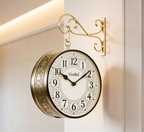 Craftel Analog 30 cm X 30 cm Wall Clock (Gold, Maroon, With Glass, Double-Sided)