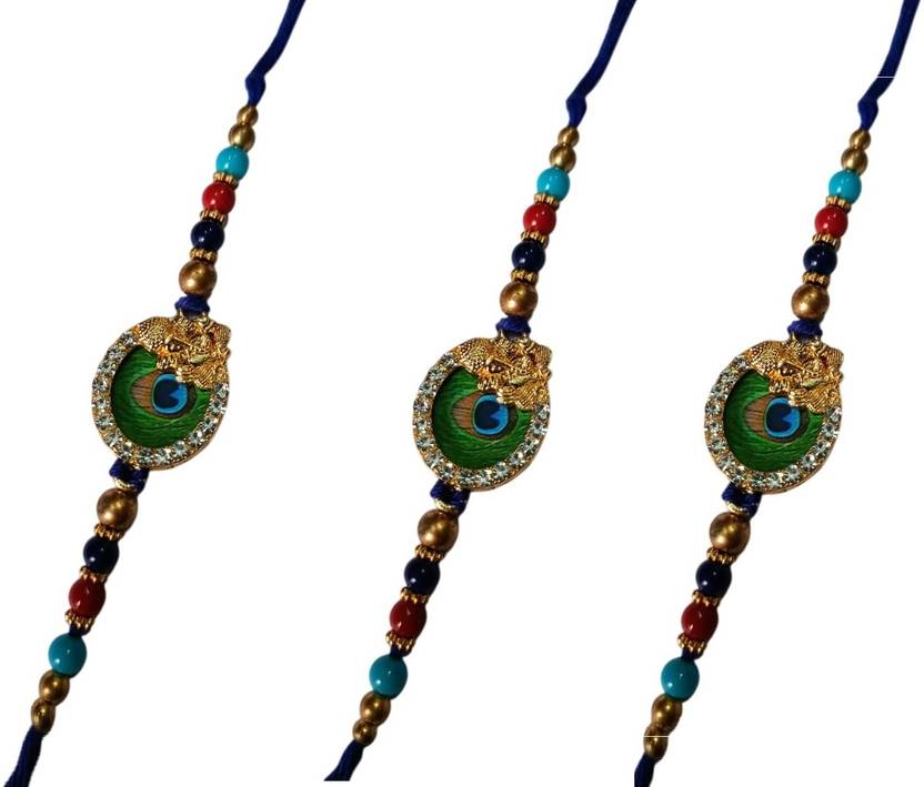 Rakhi for Brother Peacock Feather Rakhi for Bhai Mor Pankh Bracelet Set of 3