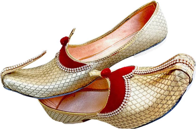 CRAFTIVA GOLD RED PUNJABI SHERWANI JUTTI WITH DIAMOND Mojaris For Men (Beige , 7)