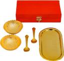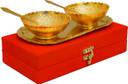 Craftlayout Iron Decorative Bowl Traditional Serving Set with 2 Bowl, 2 Spoon& 1 Plate With Royal Velvet Box (Pack of 5, Gold)