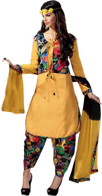 "CATALOG NO. : CPS106| PRODUCT CODE : 9609 BASE COLOUR : Yellow TOP FABRIC : Banglori silk TOP COLOUR : Yellow PATIALA FABRIC : Bhaglpuri BOTTOM COLOUR : Multi DUPATTA FABRIC : Nazneen DUPATTA COLOUR : Yellow & Black WORK : Embroidery TOP SIZE : Chest Size: Max. up to 44″ : Length: Max. up to 48″ PRODUCT SIZE : Bottom – 2.8mtr : Dupatta – 2mtr PRODUCT TYPE : Semi-Stitched WEIGHT : 1 kg OCCASION : Party, Festival STYLE : Patiala Suit"