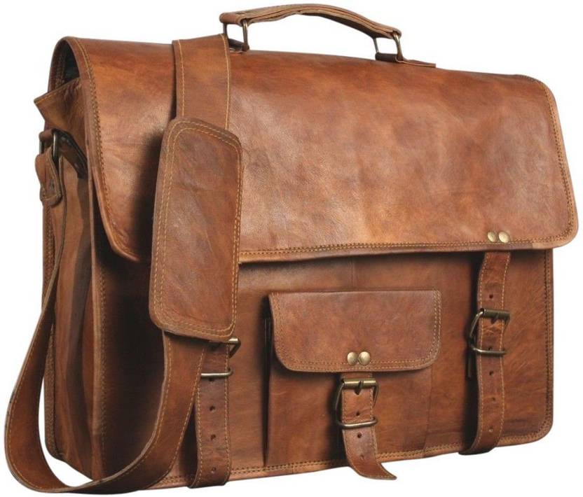 Men's Leather Messenger Satchel Shoulder Briefcase Business Bag - Leather Bags Best Product in Leather Bags Descriptions: 100% genuine goat leather messenger bag with a durable inner lining made of canvas. Designed to carry 15" laptops, tab, documents or other personal belongings, etc. A genuine hand made product using Natural leather. Natural oils and light have been used to obtain the style of the leather - chemical free! This bag features a wonderful unique and vintage look, designed to carry mini laptops, tab, documents, personal belongings etc. Perfect for the office, school or as a gift! Specifications: Made from 100% genuine, strong, lightweight, durable goat leather, tanned without the use of chemicals Adjustable shoulder strap, half flap bag with strap lock & small front pocket. big inner compartment for carrying files, mini laptop's, tab's etc. 1 zipper compartments for important documents/paperwork etc. Inner canvas lining Vintage leather wash Leather softens and darkens with use Handmade in India by experienced craftspeople Size: 15" Wide X 11" Long X 4" Deep