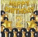 Happy Birthday - Golden Color Foil Banner, Black Metallic Latex Balloon(s), Golden Metallic Latex Balloon(s), Glue Dots, Number 2 Golden Color Foil Balloon, Golden Color Curtain