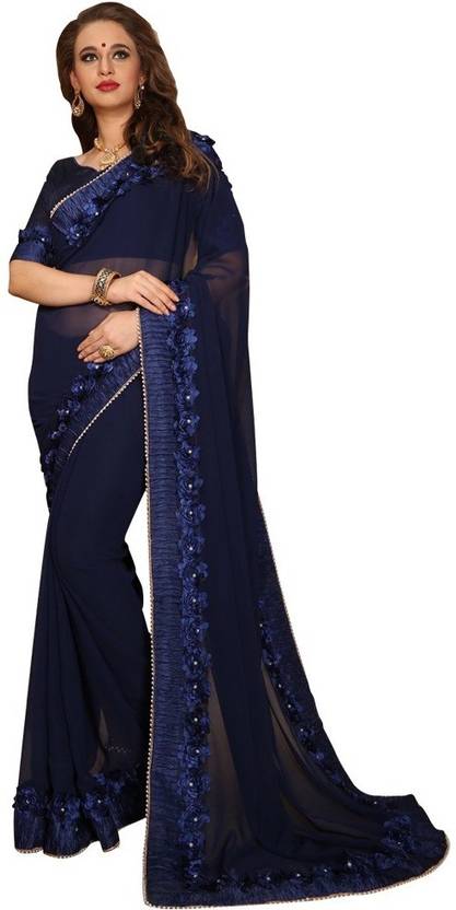 STYLE : Designer saree COLLECTION : COLOUR : Blue FABRIC : Georgette WORK : Embroidery with Heavy border SET CONTENTS : Saree and Unstitch Heavy Blouse SEASON : Any WEIGHT : 500 gm OCCASION : Wedding, Festival, Casual, Bridal, Party WASH CARE : Dry clean only