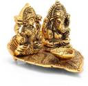CraftVatika Laxmi Ganesh Idol Murti Diya For Diwali Pooja Set of 25 Decorative Showpiece - 7.62 cm (Metal, Gold)