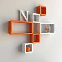 Craftylook set of 6 cube storage Solid Wood Display Unit (Finish Color. MDF (Medium Density Fiber) Wall Shelf (Number of Shelves - 6, White, Orange)
