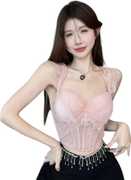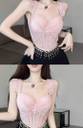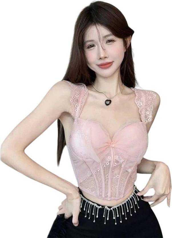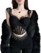 MYSTIFY®Lace Style Top with Crystal Fringe Trim