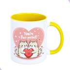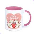 Delight your loved one with our charming "You're Purr-fect!" ceramic cup! This premium 330ml capacity mug features two incredibly cute cartoon cats hugging a heart, all set within a lovely pink heart background with tiny paw prints. The sweet phrase "You're Purr-perfect!" adds a playful and affectionate touch, making it an ideal expression of love. The delightful pink handle and inner rim perfectly complement the charming design. Crafted from high quality, durable ceramic, this cup is built for daily enjoyment. It is microwave safe for convenient heating and dishwasher safe for effortless cleaning. Ideal for sipping your morning coffee, afternoon tea, or any preferred hot beverage. This "You're Purr-fect!" cup makes a perfect gift for partners, spouses, girlfriends, boyfriends, cat lovers, or anyone you cherish. A thoughtful present for Valentine's Day, anniversaries, birthdays, or just to show your adoration. The high quality printing ensures the design remains vibrant and fade resistant, providing long lasting sentimental value.