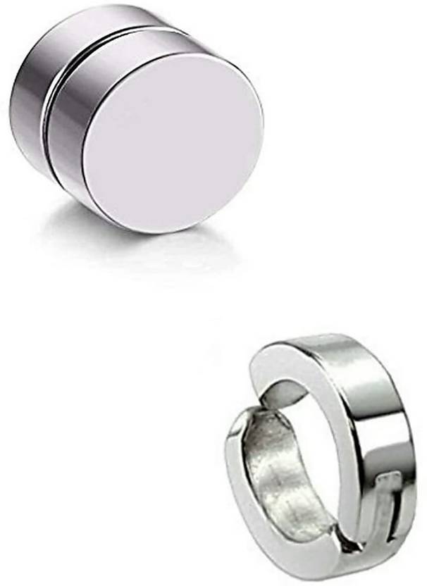Crazy Fashion Combo of 1 Pcs each Silver Color Magnet & Non Pierced Earings for Unisex Brass Stud Earring