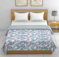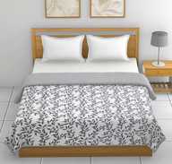 CRAZY WORLD Printed Single Dohar for AC Room (Cotton, grey white flower)