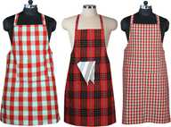CRAZYWEAVES Cotton Chef's Apron - Free Size (Red, Black, Pack of 3)